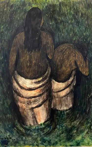 Images: Image: Left: Rufina Tamayo, Women Bathing, 1937, Watercolor; Right: Edward